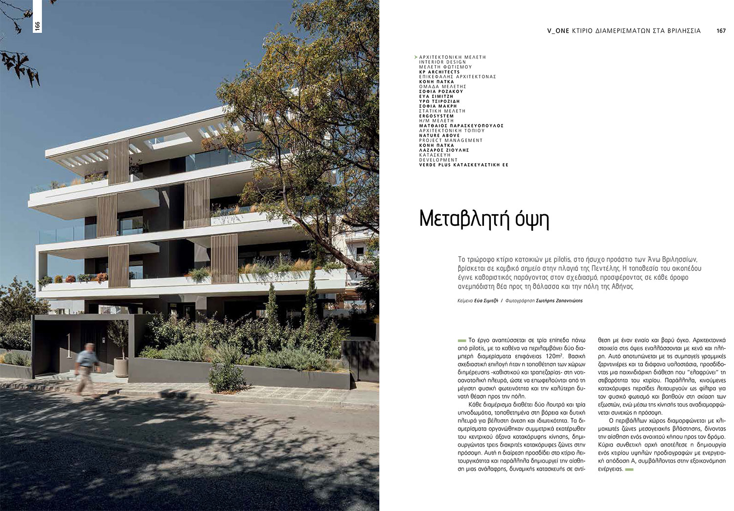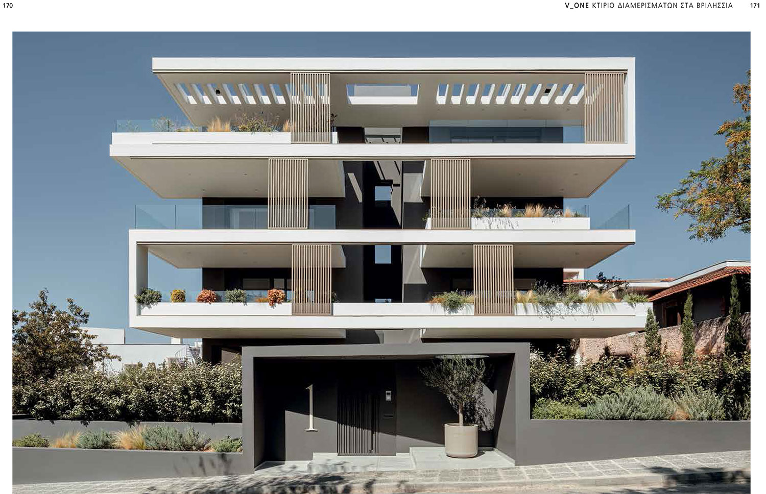 Three-story residential building with a pilotis in the quiet suburb of Ano Vrilissia, positioned at a strategic point on the slopes of Mount Penteli. The site's location was a determining factor in the design, offering unobstructed views of the sea and the city of Athens from every floor.