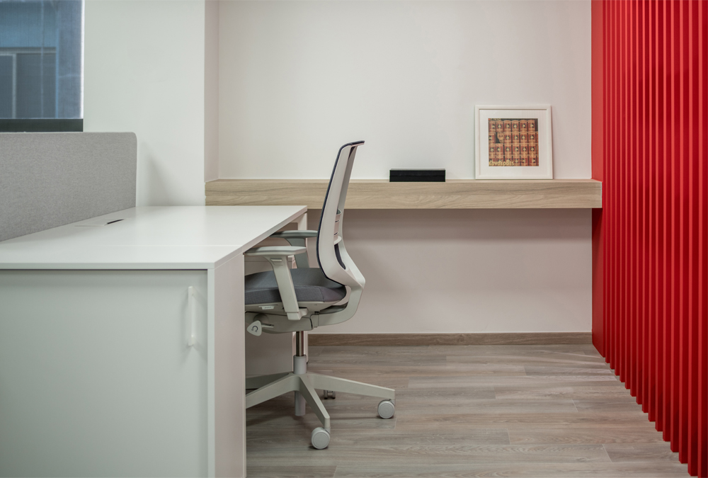 Η χρωματική παλέτα που αποδόθηκε στους τοίχους από τα λογότυπα της εταιρείας ισορροπεί μεταξύ των ουδέτερων αποχρώσεων των επίπλων και των ξύλινων κατασκευών ενώ η ενσωμάτωση γραφιστικών εφαρμογών, η οποία βασίστηκε στις κατευθυντήριες γραμμές της εταιρείας, έδωσαν μια ξεχωριστή ταυτότητα στον χώρο.